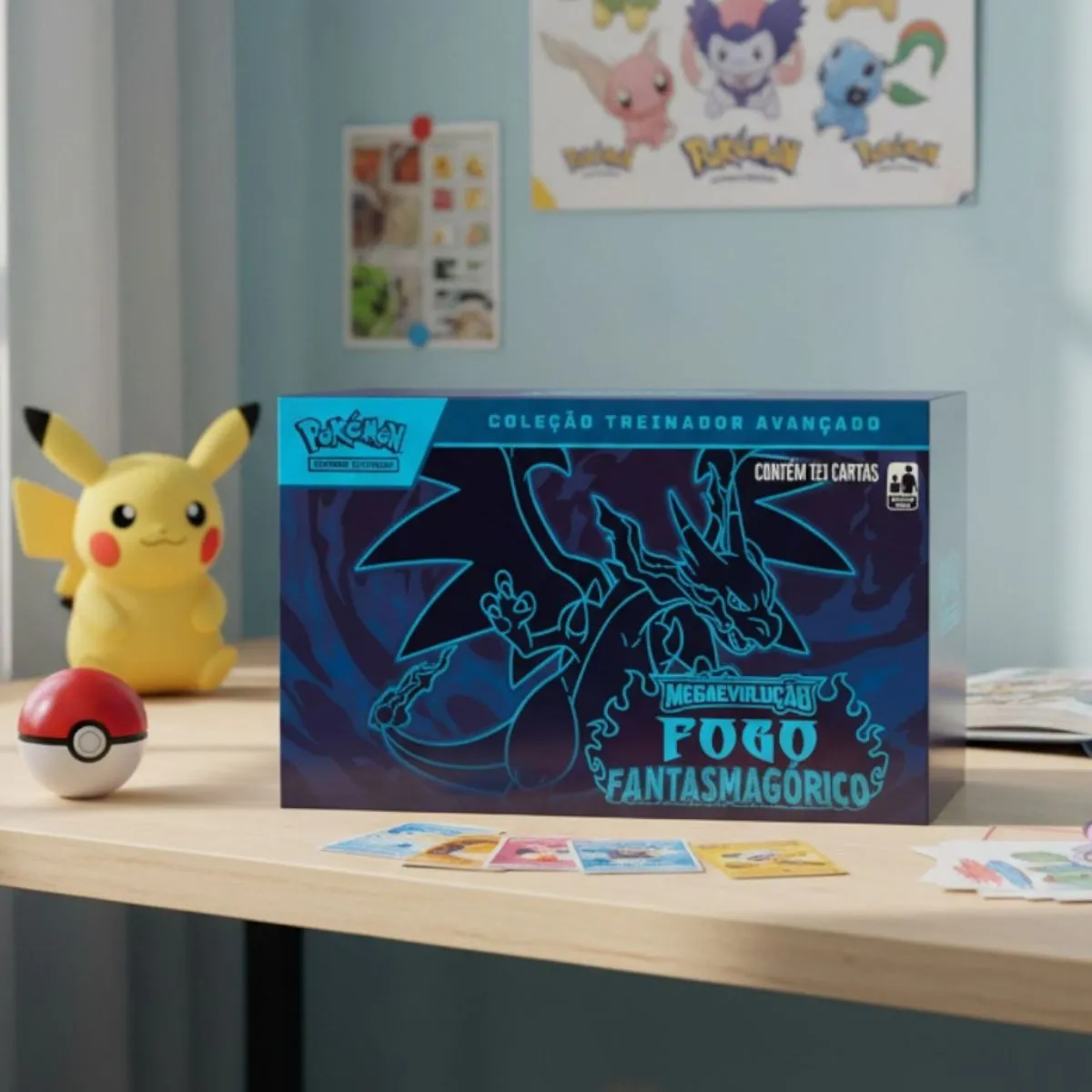 Chamas azuis cauterizantes rasgam um campo escuro de batalha enquanto Mega Charizard X ex observa seus oponentes das alturas! Com um calafrio intenso desafiando o calor, a figura sombria de Mega Gengar ex emerge lentamente, e os dois Pokémon se preparam para o combate. Dispostos a provar sua força, Mega Heracross ex, Mega Lopunny ex e muitos outros Pokémon se alinham para dar tudo de si na expansão Mega evolução — Fogo Fantasmagórico do Pokémon Estampas Ilustradas! A Coleção Treinador Avançado de Mega evolução — Fogo Fantasmagórico do Pokémon Estampas Ilustradas contém: – 20 pacotes de booster de Mega evolução — Fogo Fantasmagórico do Pokémon Estampas Ilustradas! – 1 carta laminada promocional com arte expandida de Charcadet! – 65 capas para cartas! – 6 dados para usar como contadores de dano! – 1 dado para jogada de moeda válido para competições! – 1 moeda de plástico! – 1 caixa de colecionador para guardar tudo! – 1 carta-código para o Pokémon Estampas Ilustradas Live! Idade recomendada: 14 anos ou mais Cada pacote de Booster contém 6 cartas Pokémon TCG. Cada jogador deve ter um baralho de 60 cartas de Pokémon TCG para jogar.